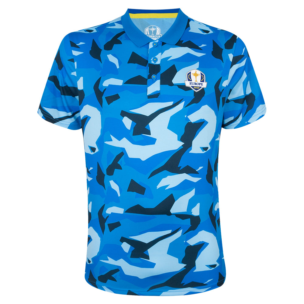 Source : euroshop.rydercup.comOfficial Ryder Cup 2023 Mens Camo Performance Brody Golf Shirt